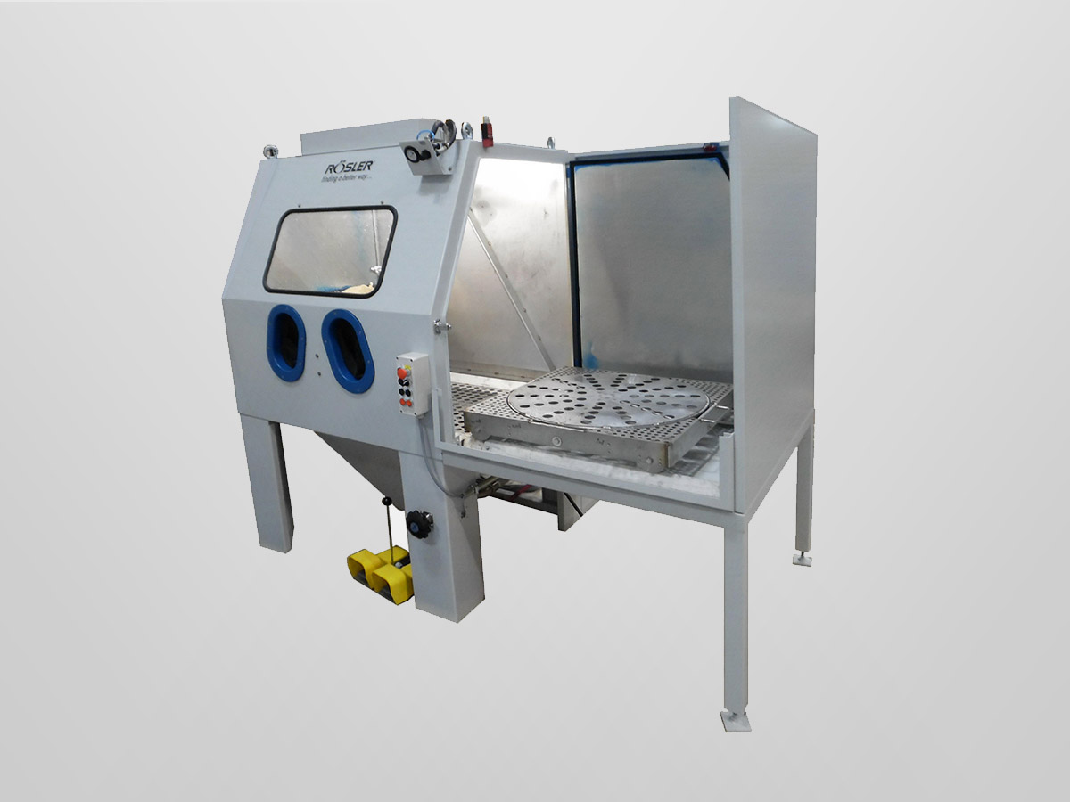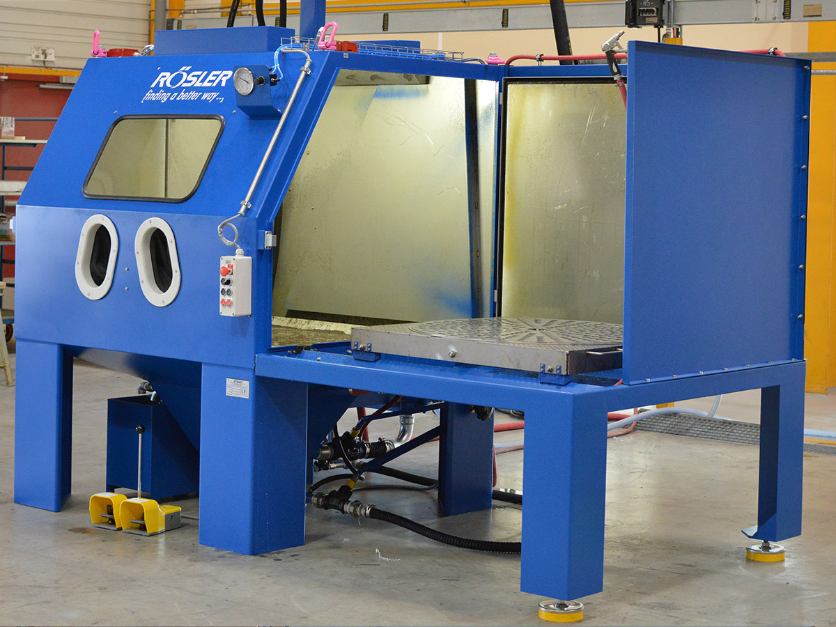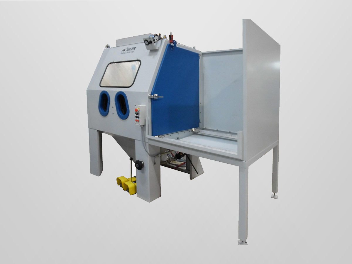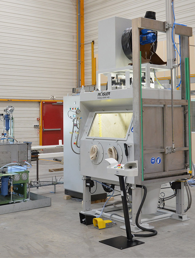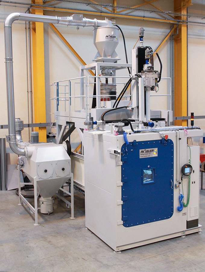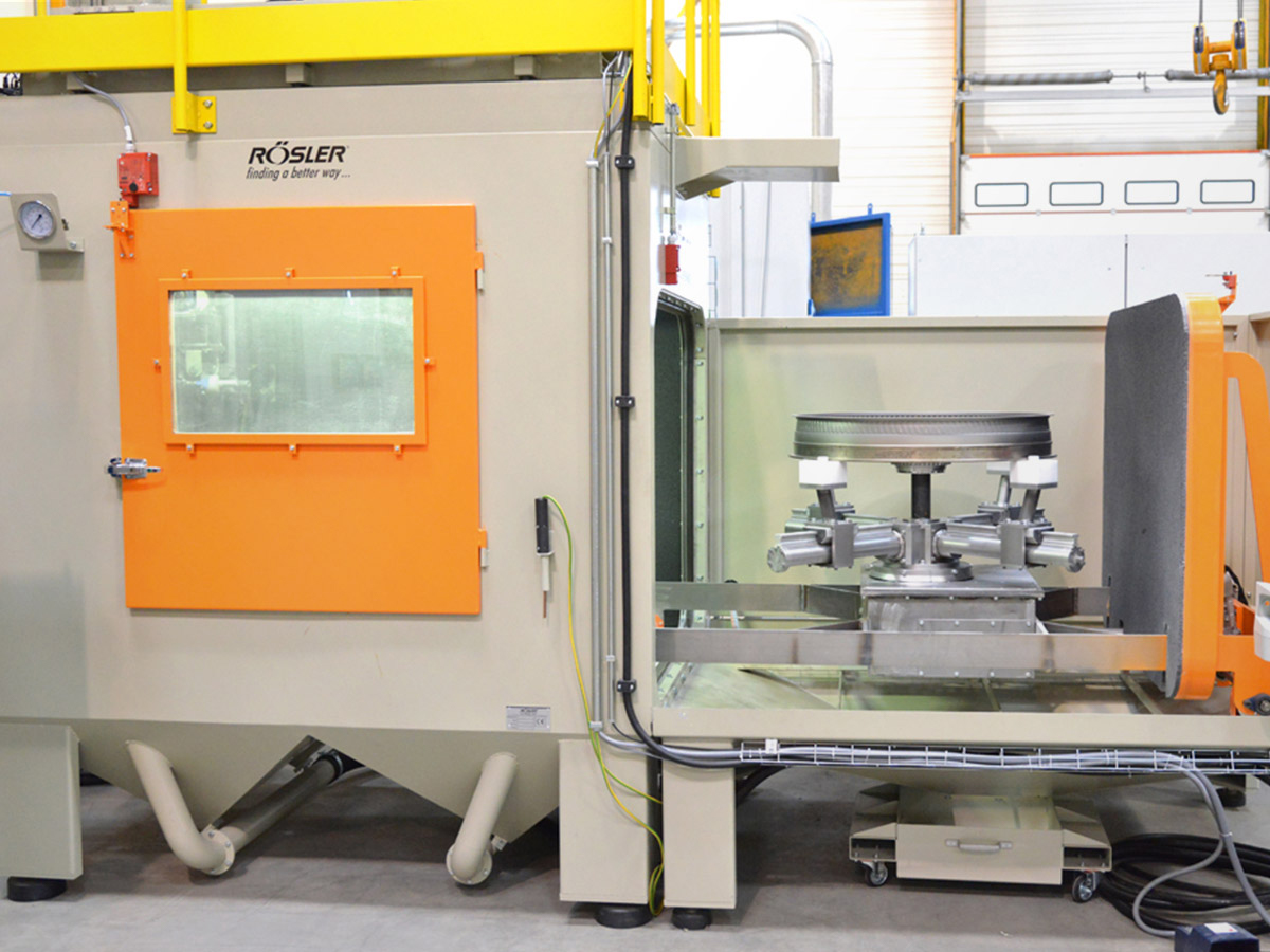 Rösler compressed air blasting machines featuring retractable load carts enable optimal access in the loading and unloading areas. They are constructed modularly and have multi-functional uses. The spectrum of applications ranges from deburring, striping and cleaning to surface strengthening using shot peening.