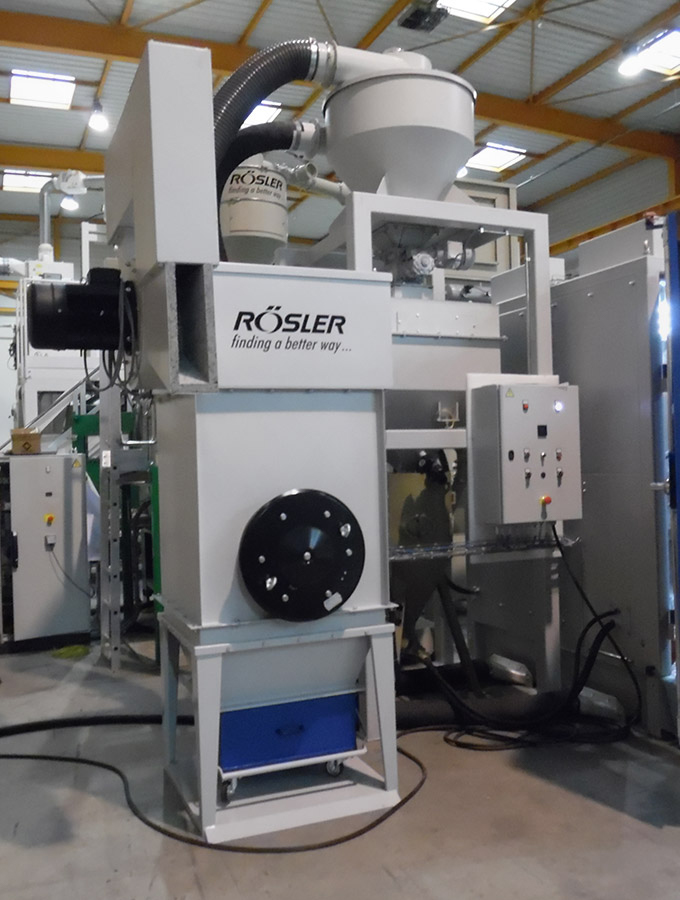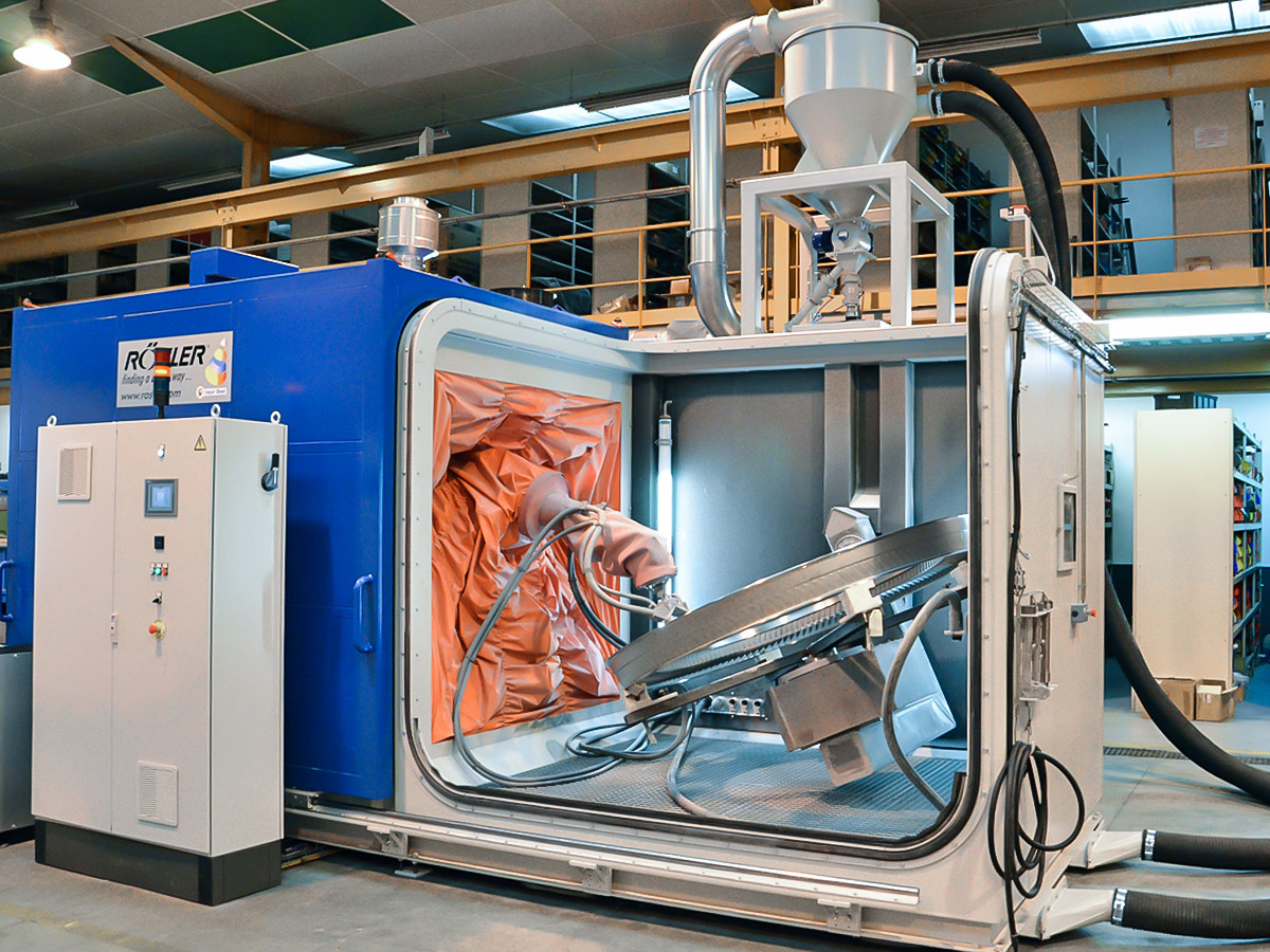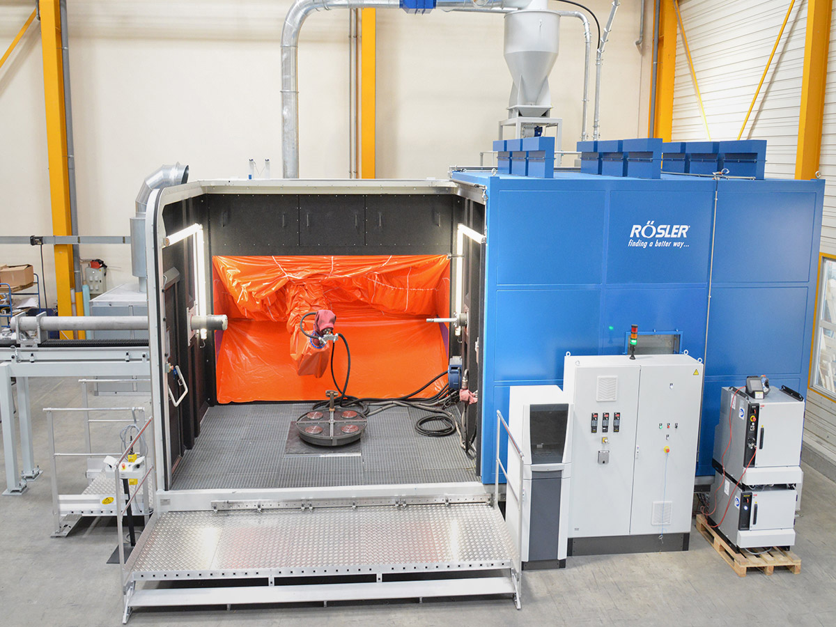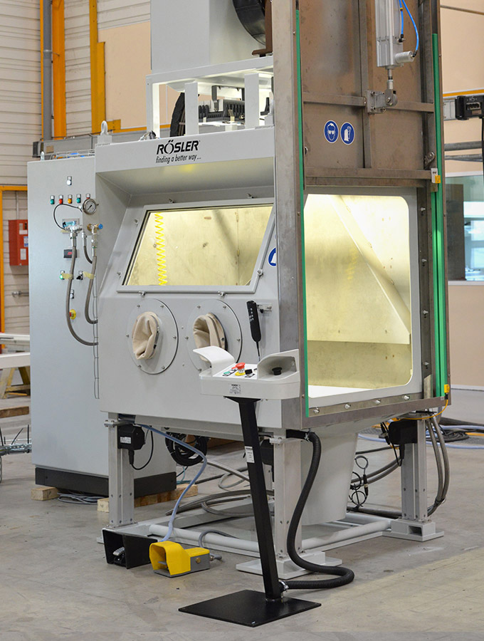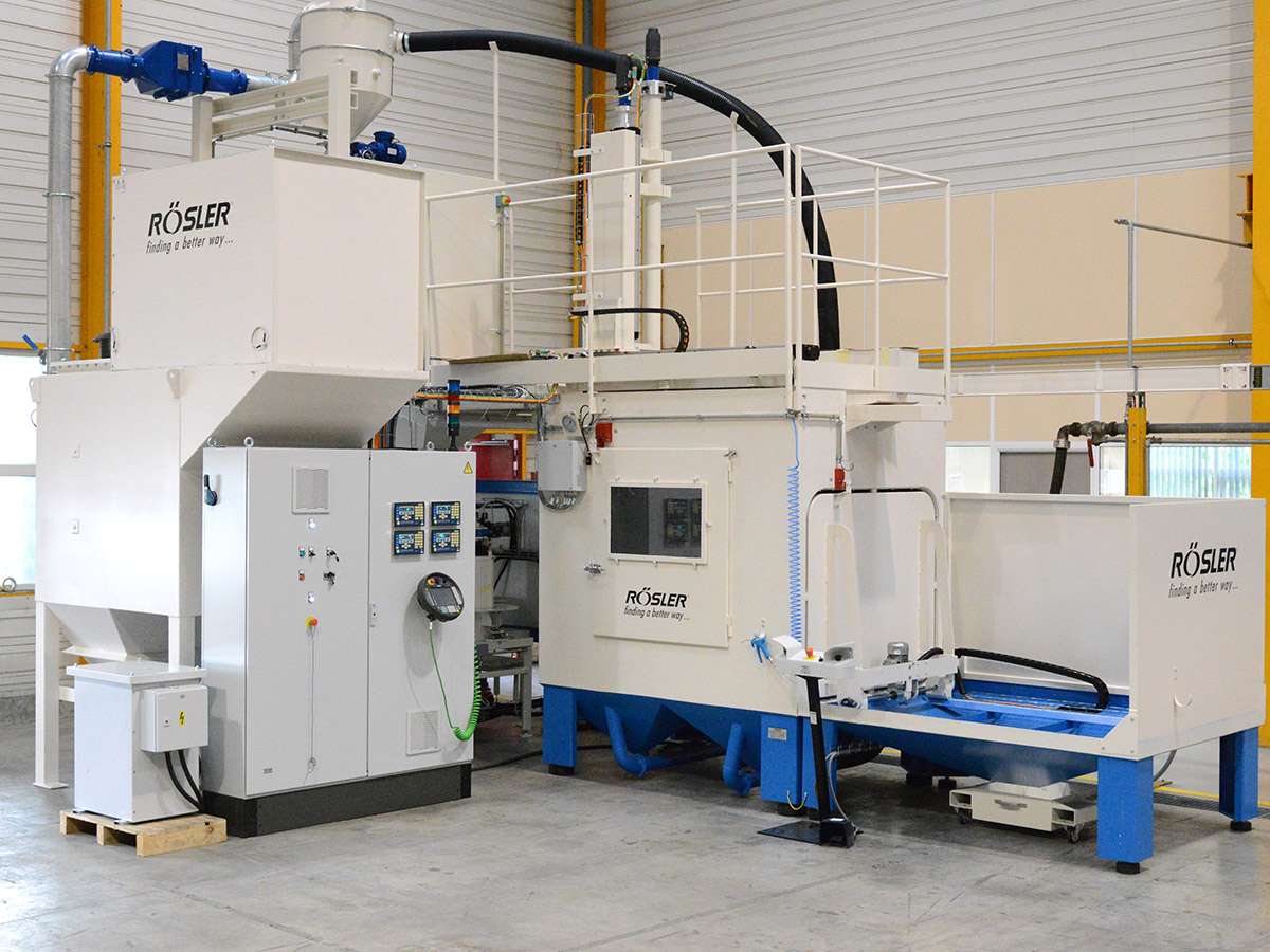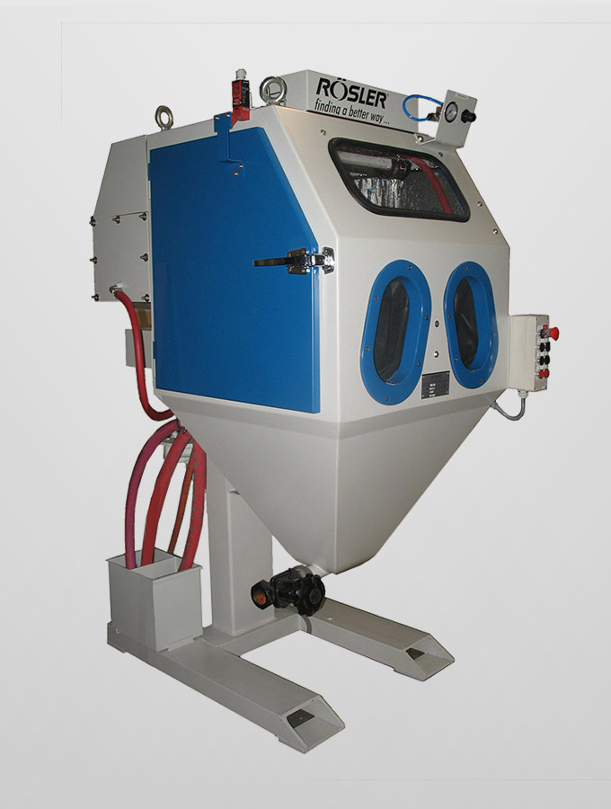 Rösler compressed air blasting machines featuring retractable load carts enable optimal access in the loading and unloading areas. They are constructed modularly and have multi-functional uses. The spectrum of applications ranges from deburring, striping and cleaning to surface strengthening using shot peening.
