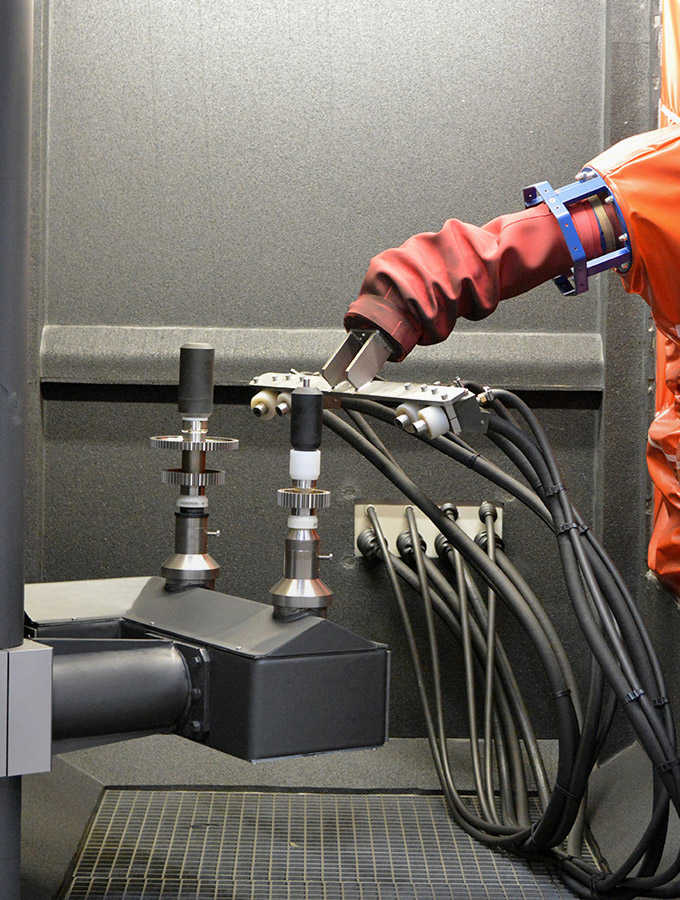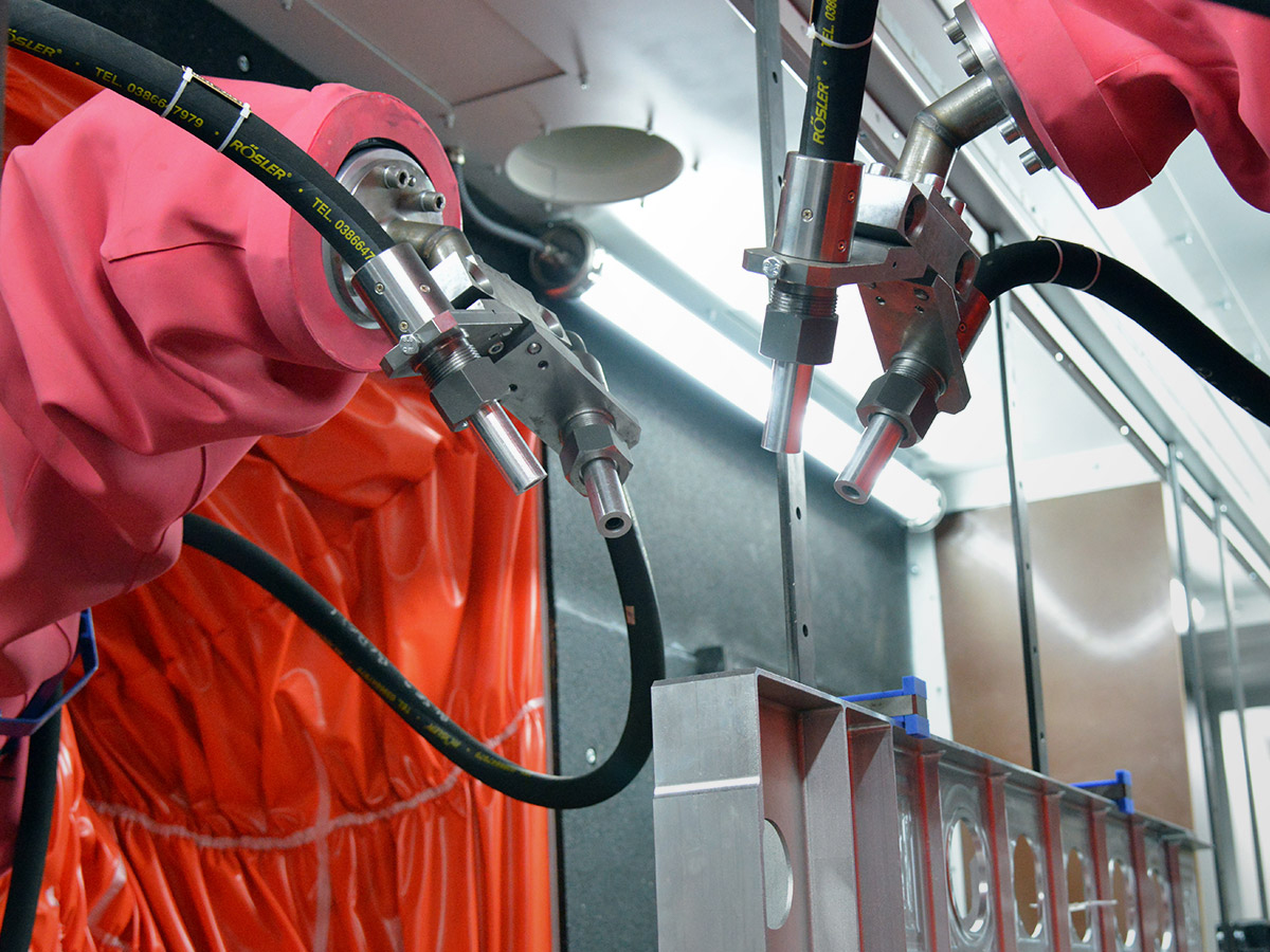 The use of robots ensures reliable, efficient and fully automated production processes. Automatic nozzle changes can also be integrated into the finishing process.