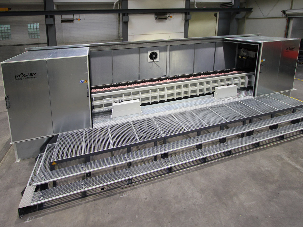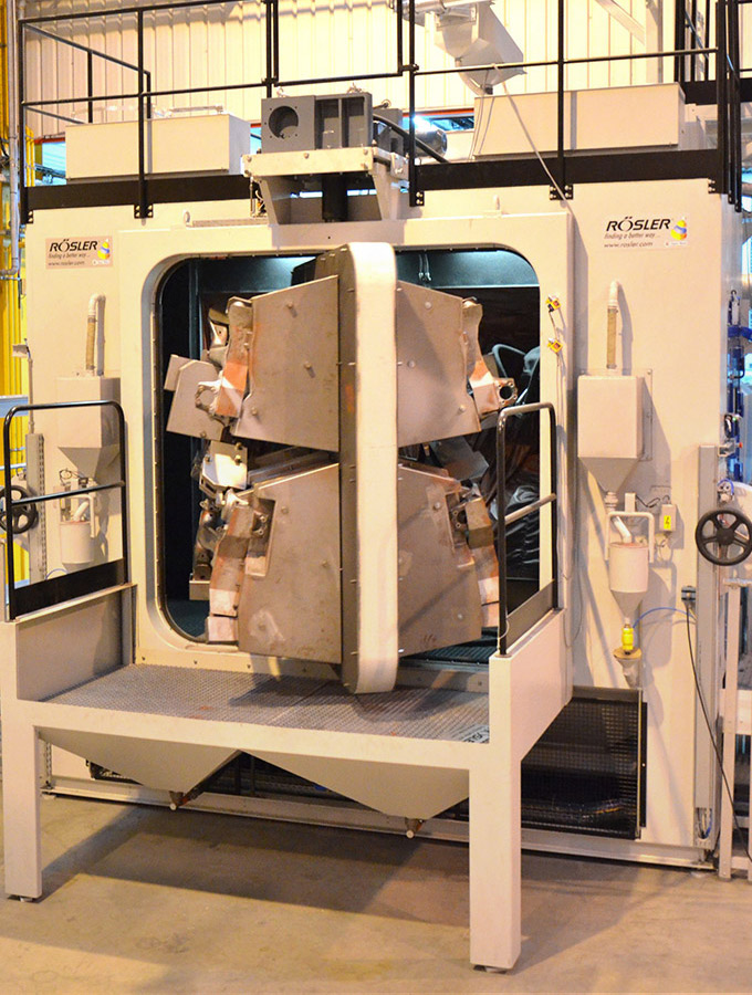 Featuring our L-door installations, Rosler offers ideal finishing solutions for undercarriage manufacturers. Designed for the finishing of large format components, our L-shaped access door allows for problem-free loading and unloading, using an overhead crane.
